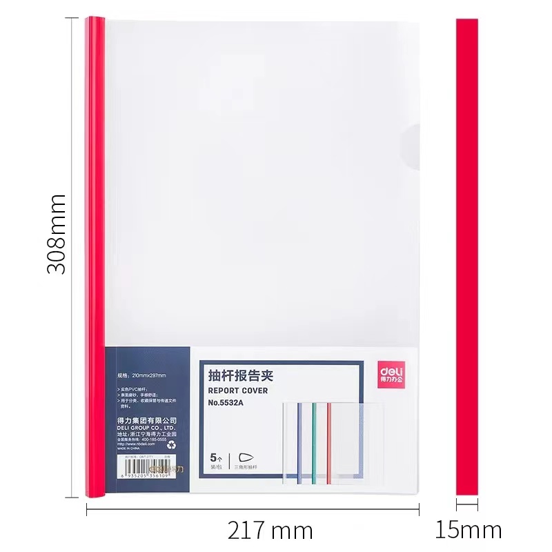 得力 deli 抽杆夹/文件夹/拉杆夹 5532A 15mm (红色、蓝色、绿色、白色颜色随机) 5个/包