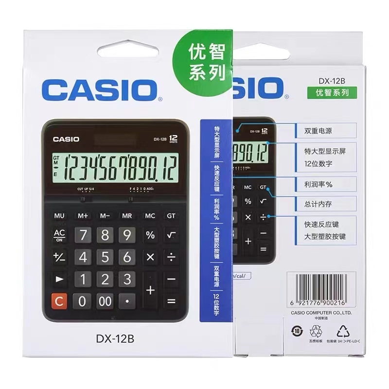 卡西欧 CASIO 12位数字显示办公计算器 DX-12B 中号