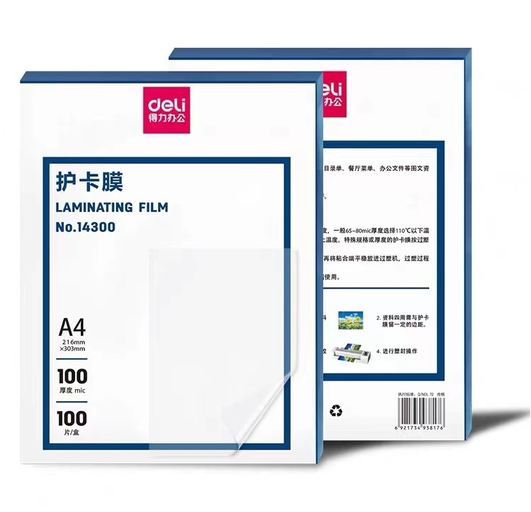 得力 deli 过塑膜/护卡膜A4 10C 14300 透明 (100张/包)