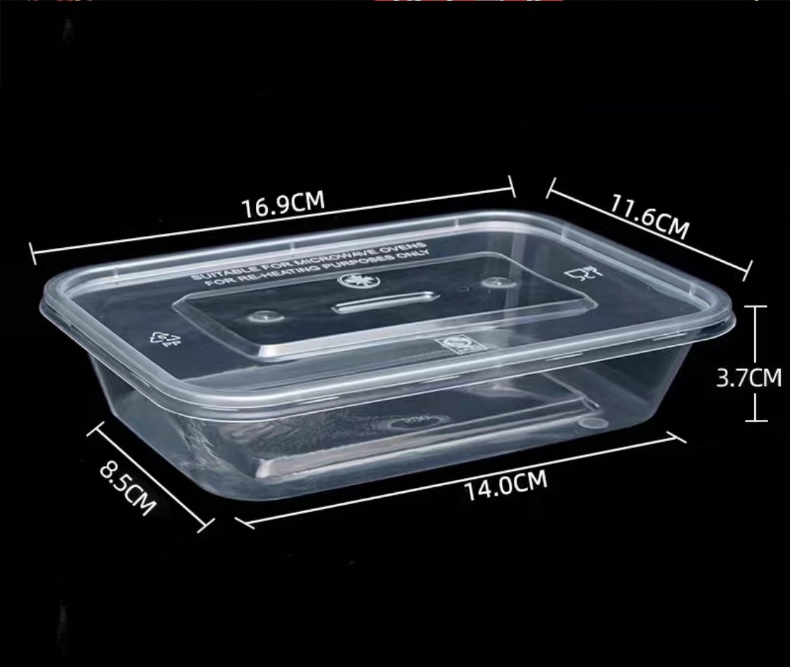 国产 PP一次性餐盒方形带盖 500ml 17*11.5*3.7cm (透明) 300个/箱
