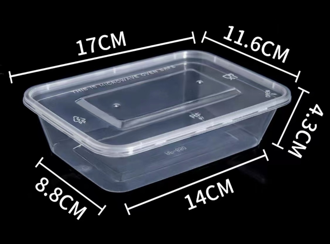 国产 PP一次性餐盒方形带盖 650ml 17*11.6*4.3cm (透明) 300个/箱