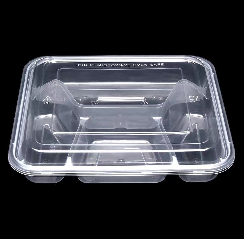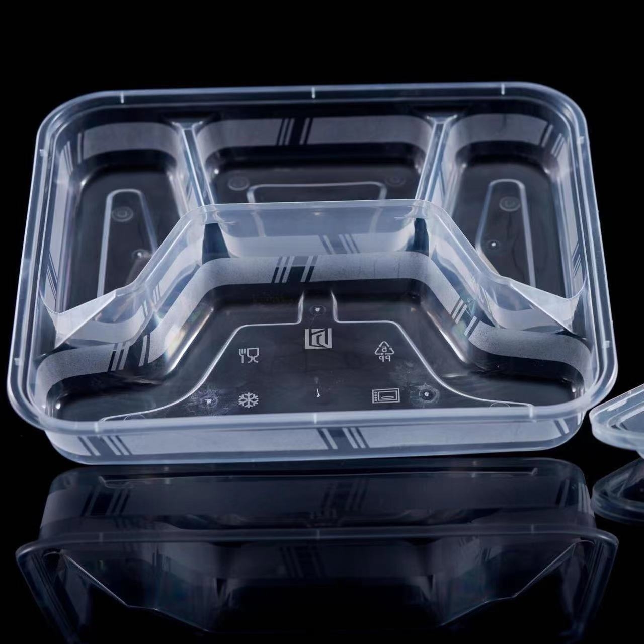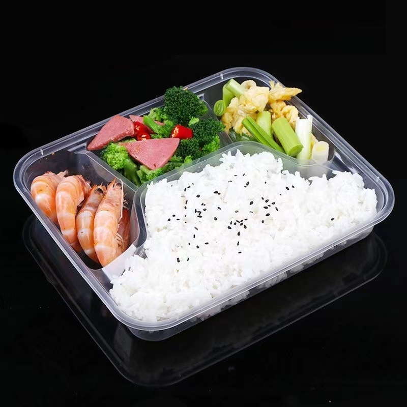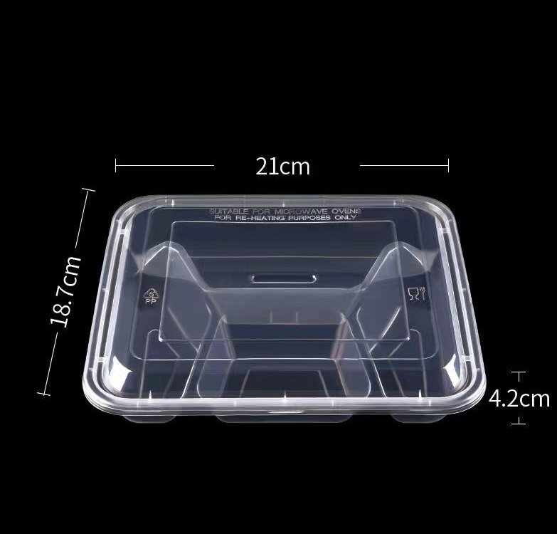 国产 PP一次性餐盒带盖四格 900ml 21*18.7*4.2cm (透明) 150套/箱