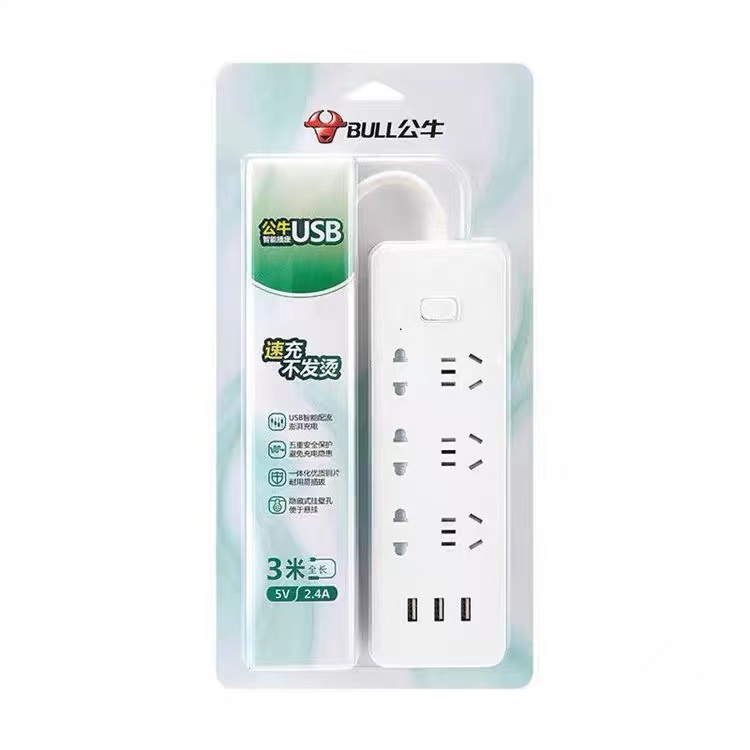 公牛 BULL 插座 GNV-UUB126 总控6位+3USB 3米
