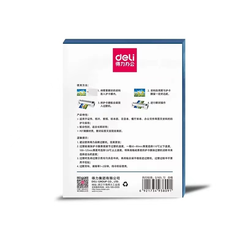 得力 deli 过塑膜/护卡膜5寸 7C 3809透明 (100张/包)