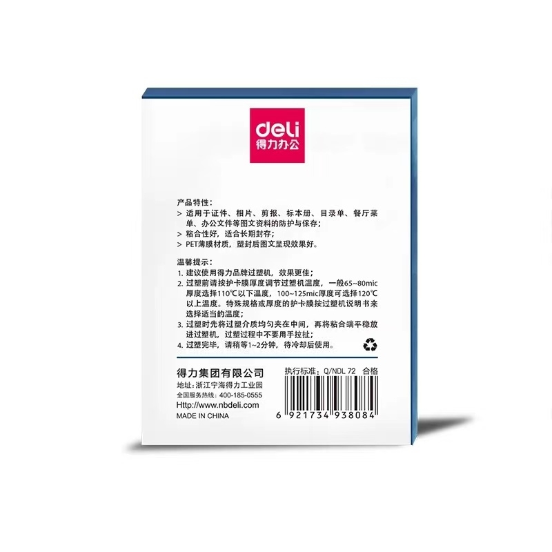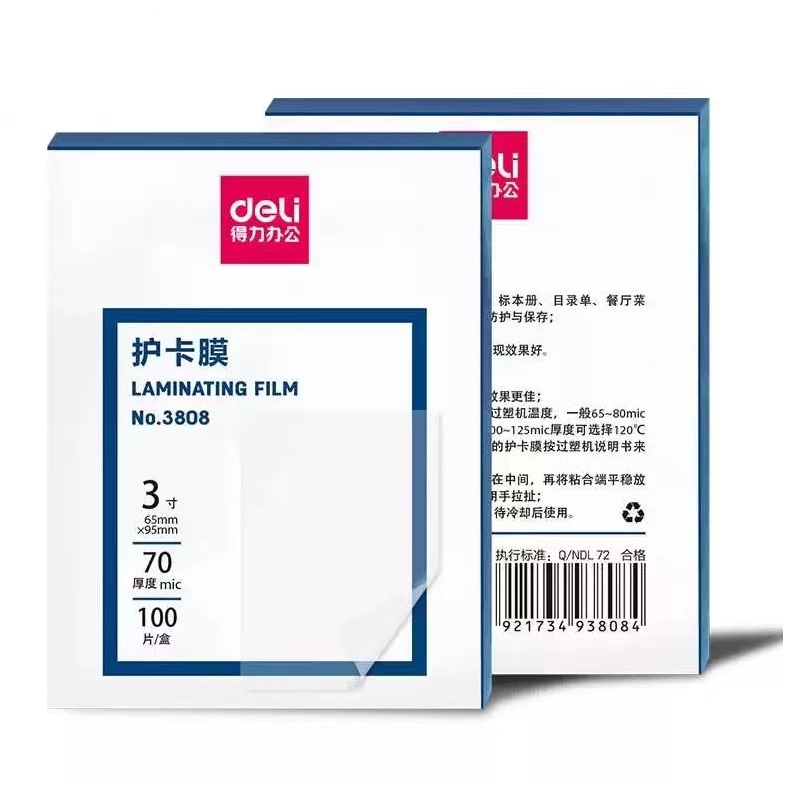 得力 deli 过塑膜/护卡膜3寸 7C 3808透明 (100张/包)