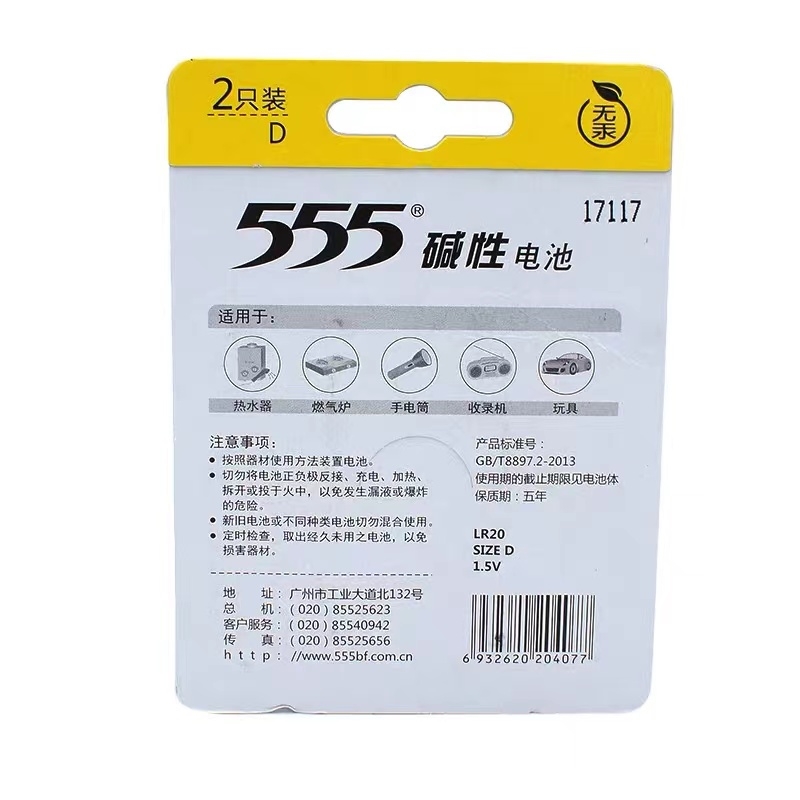 555 大号电池 1号 2粒/卡