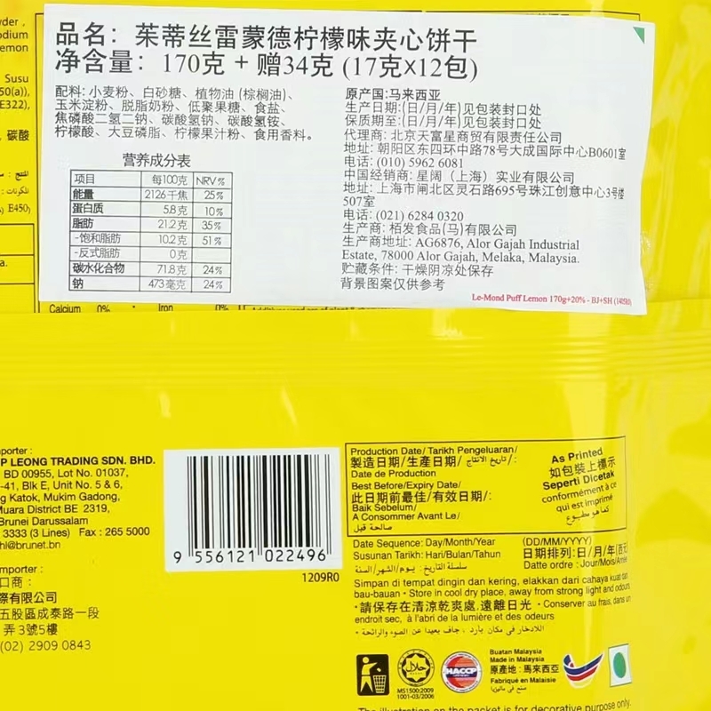 茱蒂丝雷 蒙柠檬夹心饼 170g/包