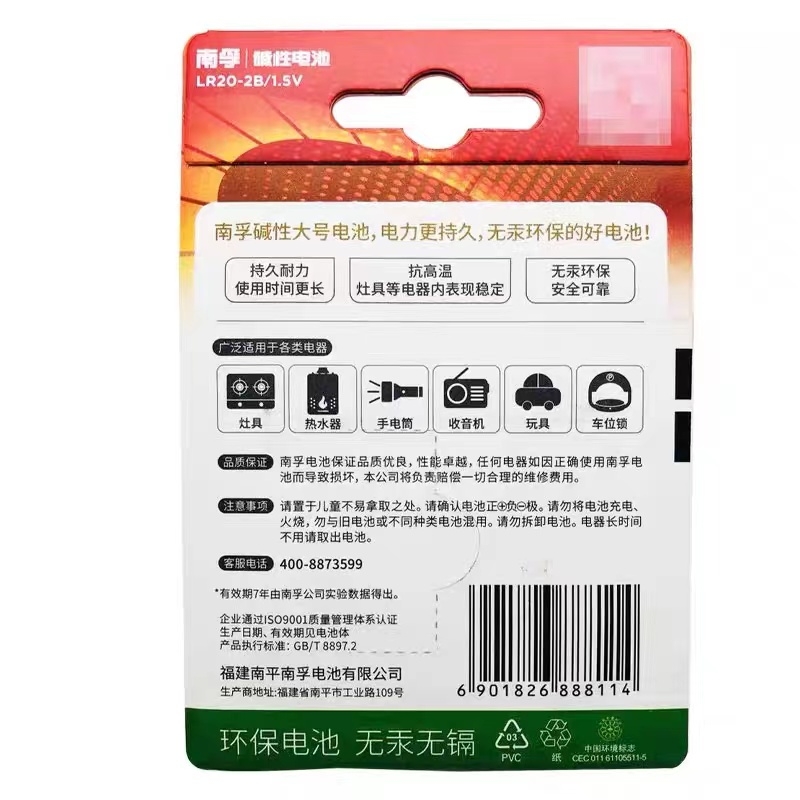 南孚 NANFU 碱性电池 1号 2粒/卡