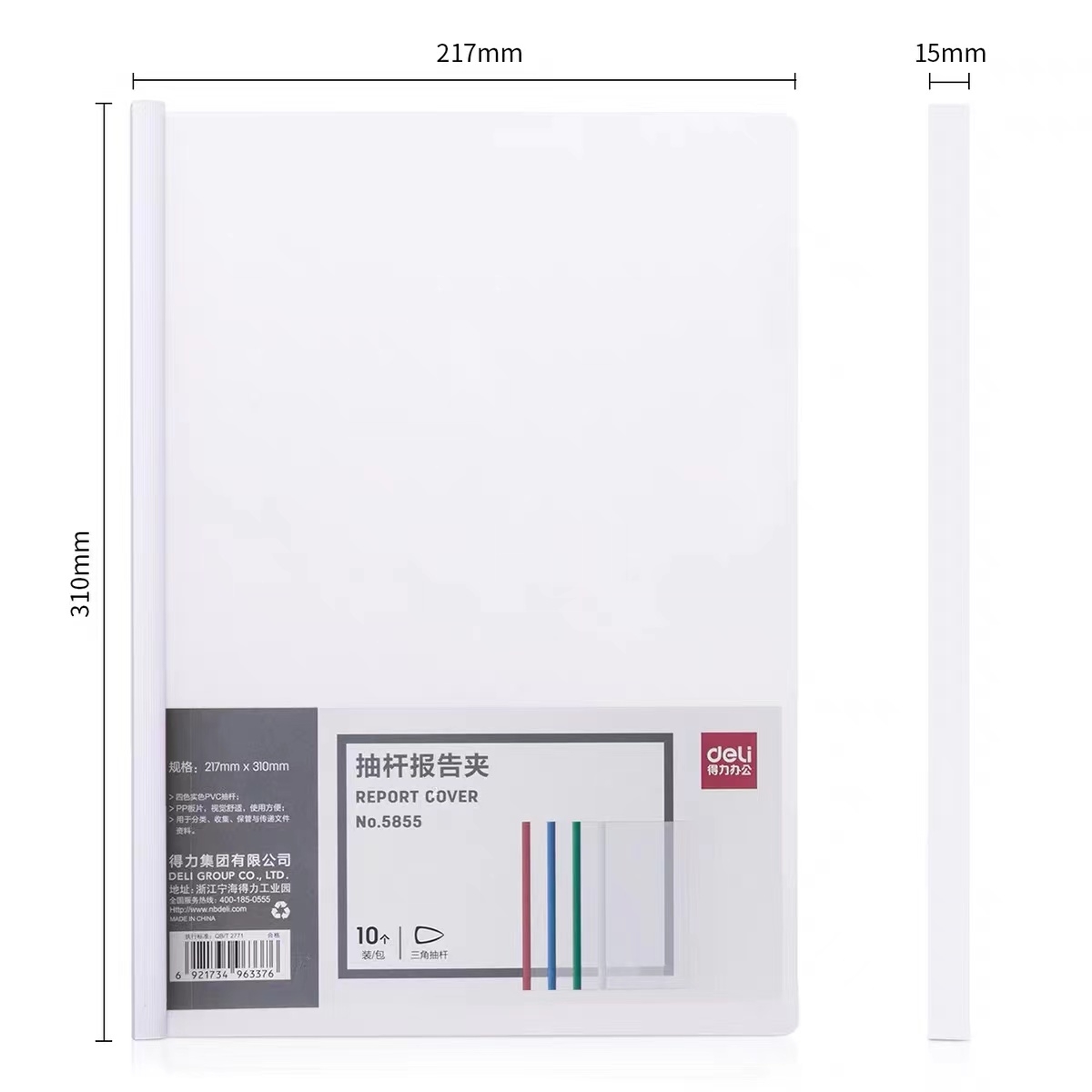 得力 deli 抽杆夹/文件夹/拉杆夹 5855 15mm (红色、蓝色、绿色、白色颜色随机) 10个/包