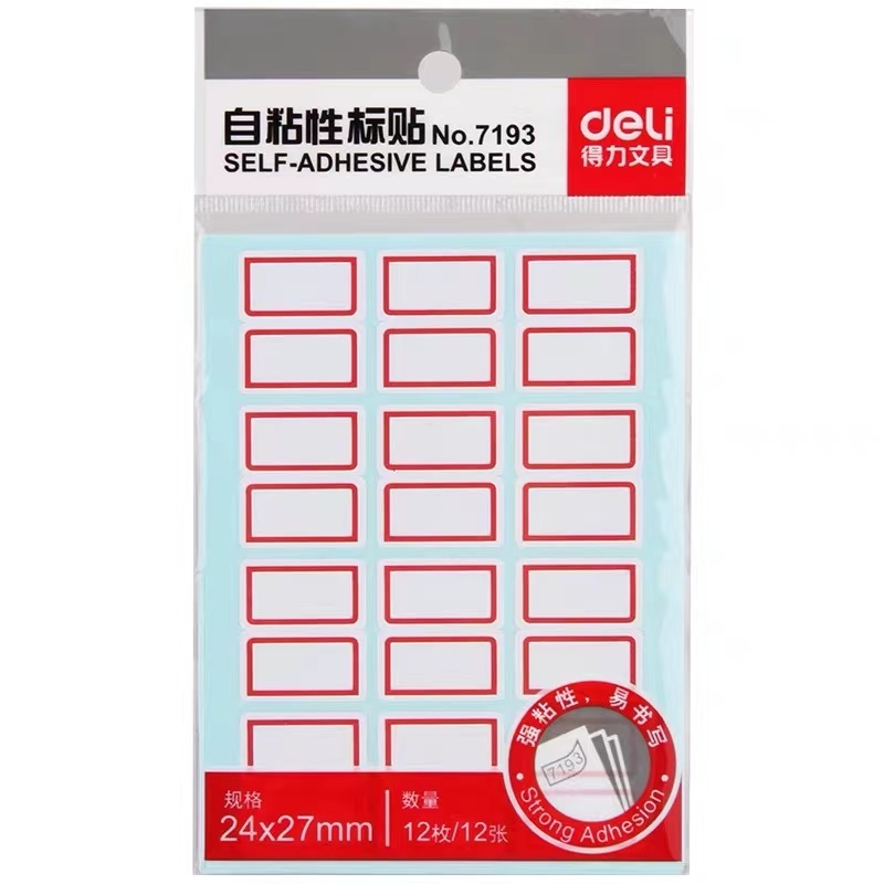 得力 deli 自粘性不干胶标签贴纸 标签纸 7193 24*27mm 12枚/张 12张/包