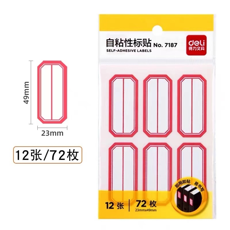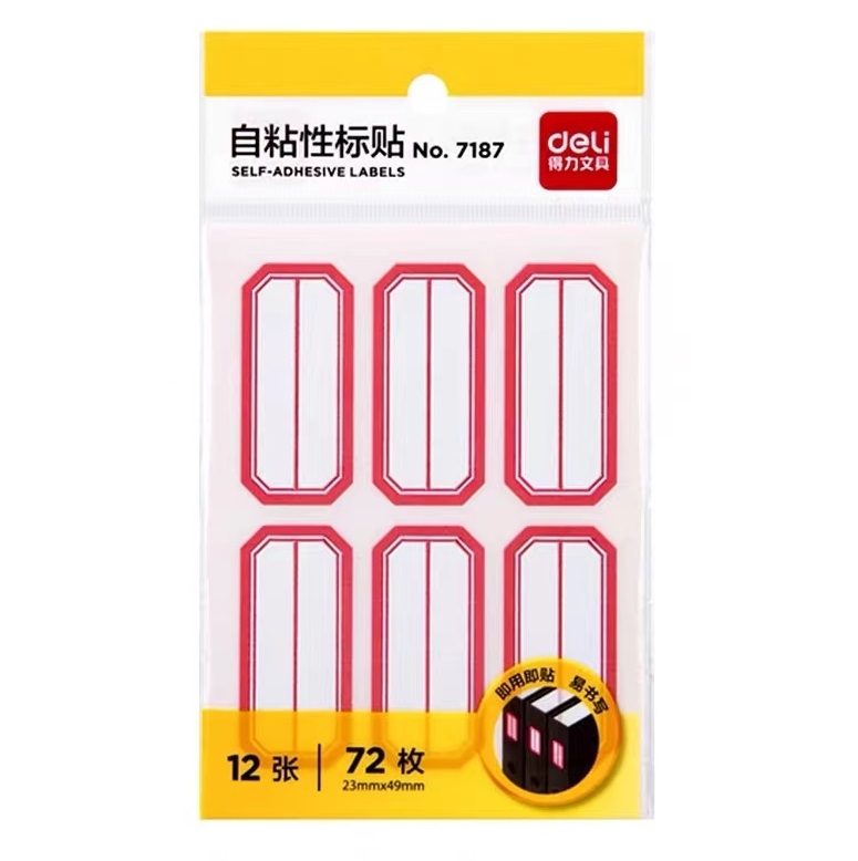得力 deli 自粘性不干胶标签贴纸 标签纸 7187 23*49mm 6枚/张 12张/包
