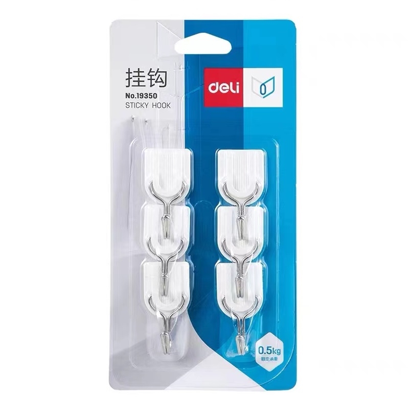 得力 deli 白色U型活动强力粘钩 挂钩 6只装 19350 承重0.5kg