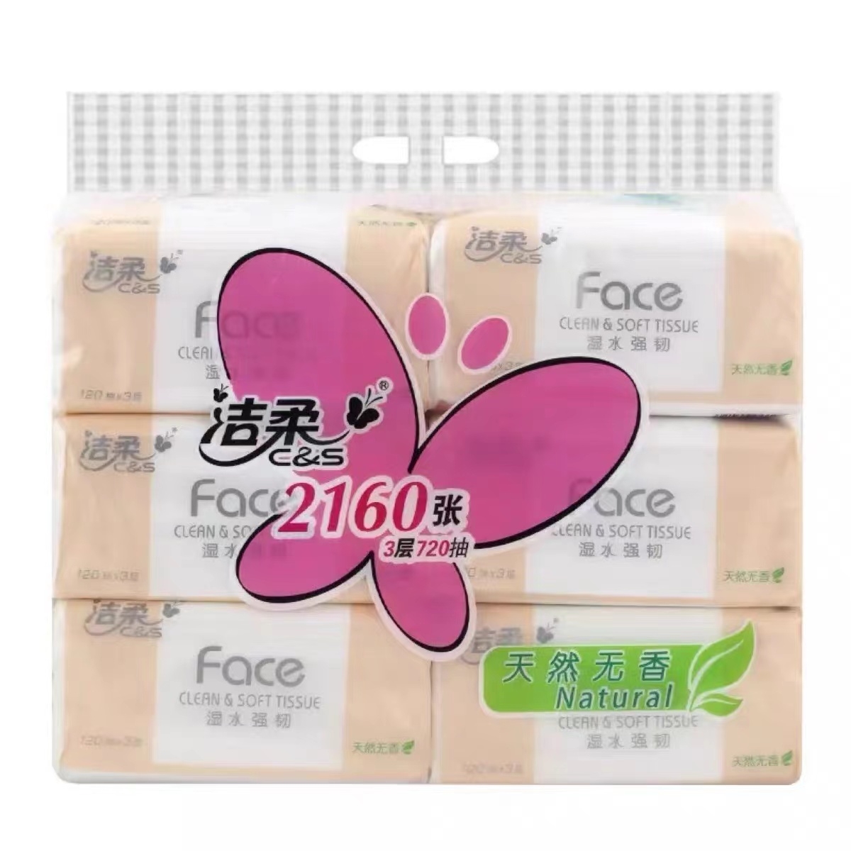 洁柔 软包抽纸 抽取式面巾纸 M码 3层 120抽/包 6包/提 PR078-06