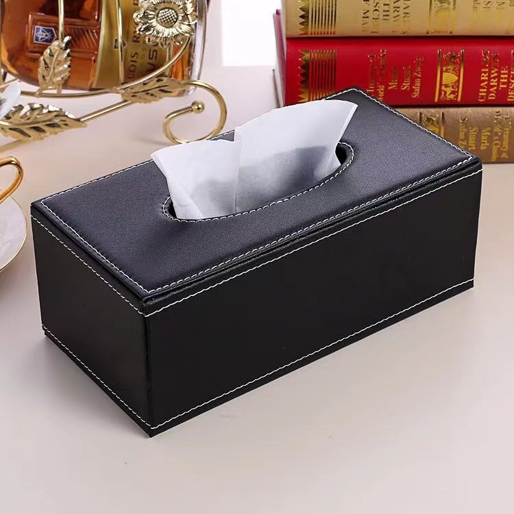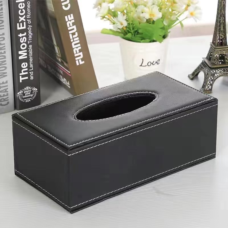 日通 皮革纸巾盒 抽纸盒 大号 24*12*8.5cm 黑色