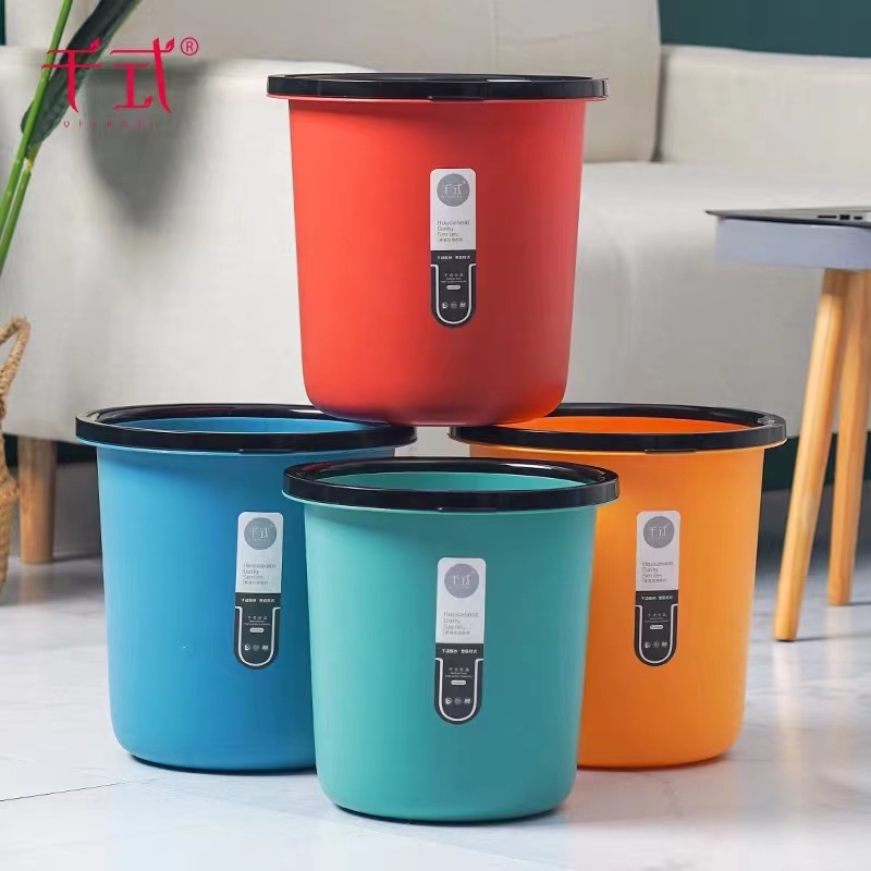 恒达 加厚纸篓带压圈式塑料垃圾桶 清洁桶 大号 3032 285*285mm(颜色随机)