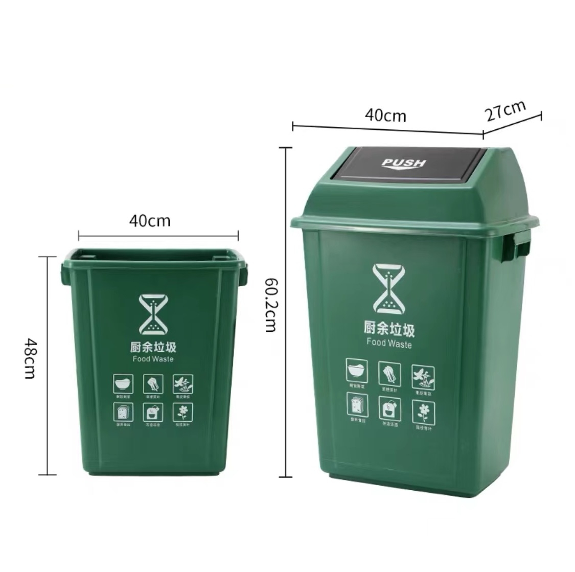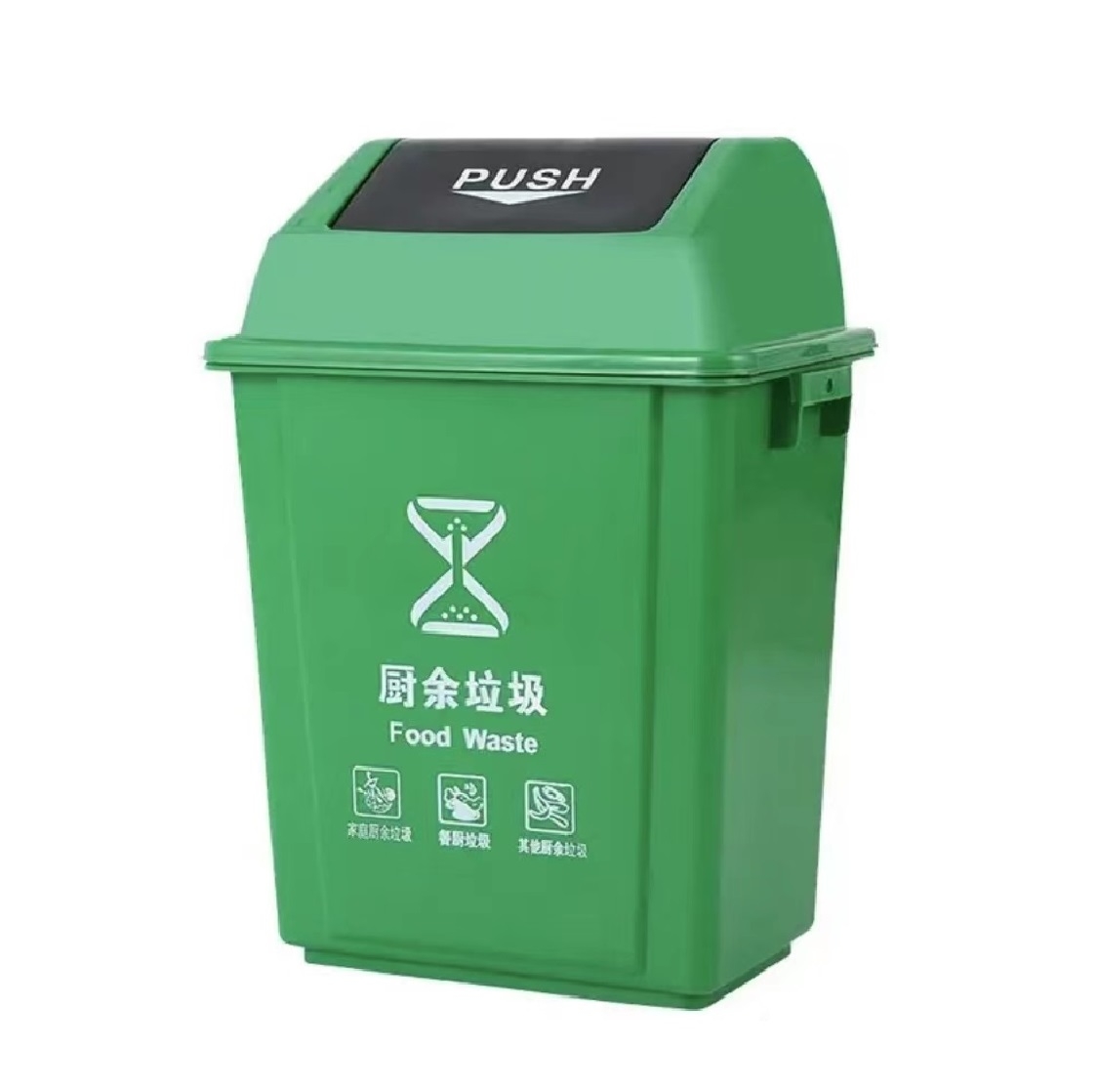 中新 分类塑料翻盖垃圾桶 40L 400*270*602mm(绿色)厨余垃圾