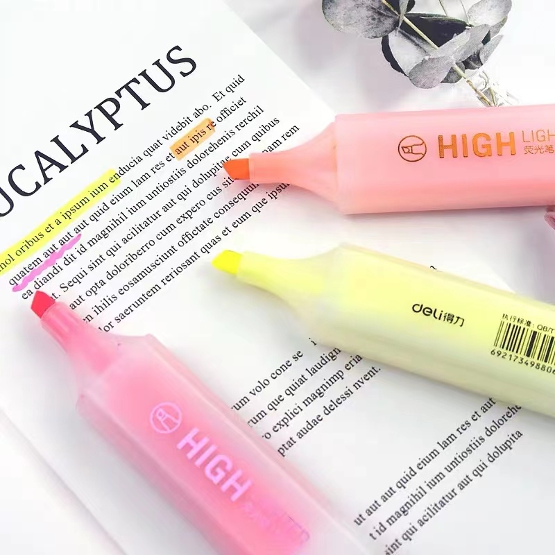 得力 deli 荧光笔 S625(六色:黄色 绿色 蓝色 粉色 紫色 橙色)10支/盒