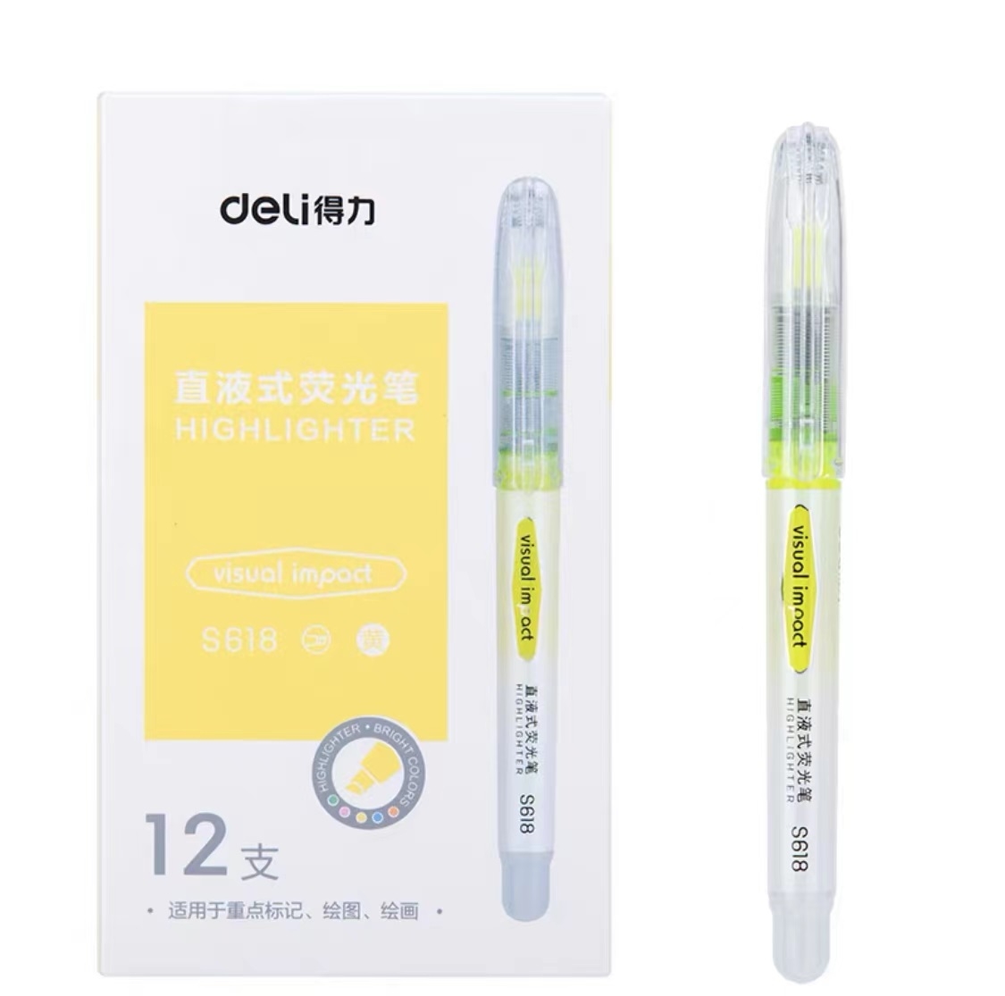 得力 deli 直液式荧光笔 S618(五色:黄色 绿色 蓝色 粉色 橙色)