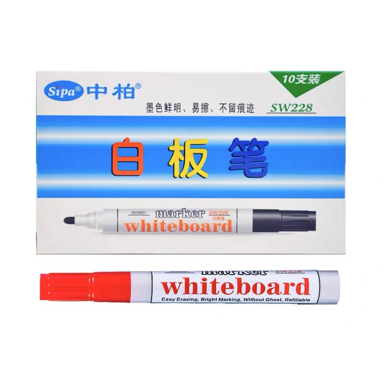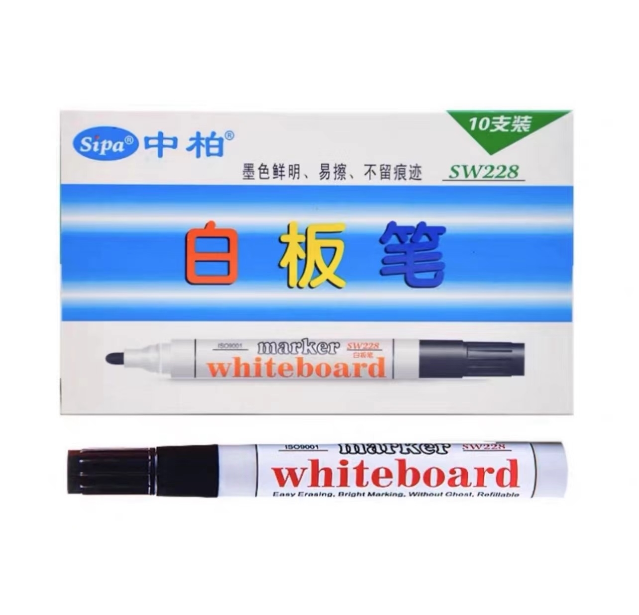 中柏 易可擦白板笔 水性笔 SW228 10支/盒(黑色、红色、蓝色、绿色)