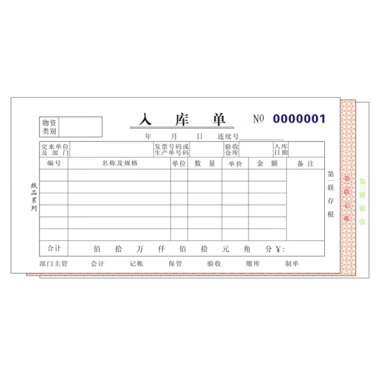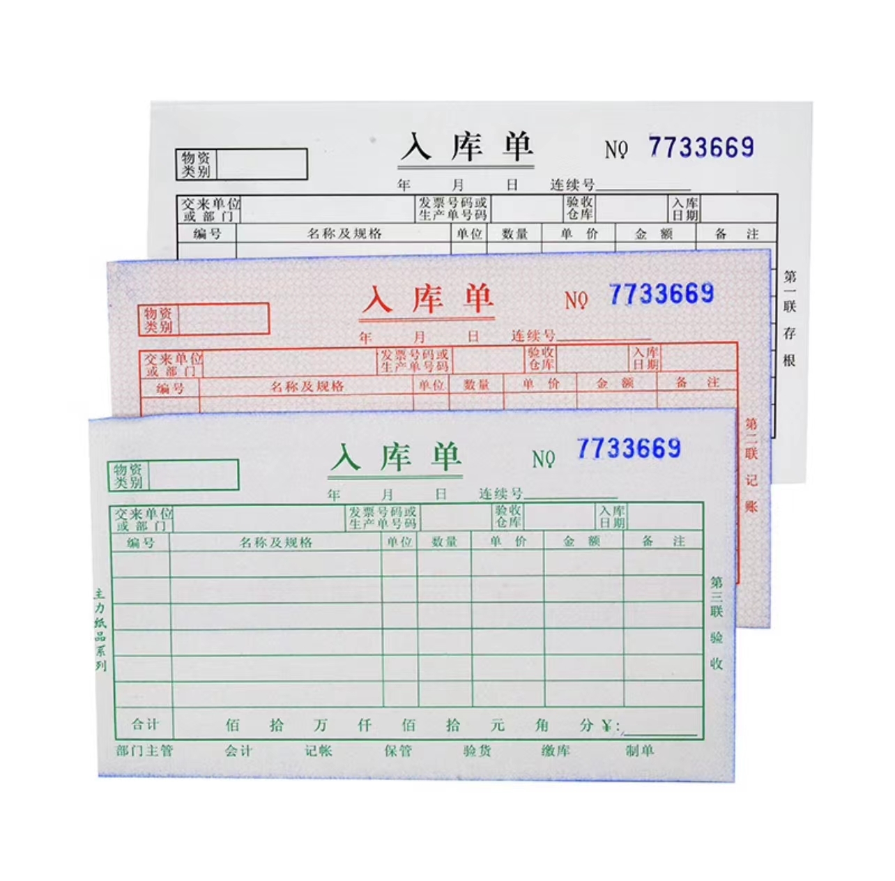 主力 三联入库单(单栏)48K 524 20组/本