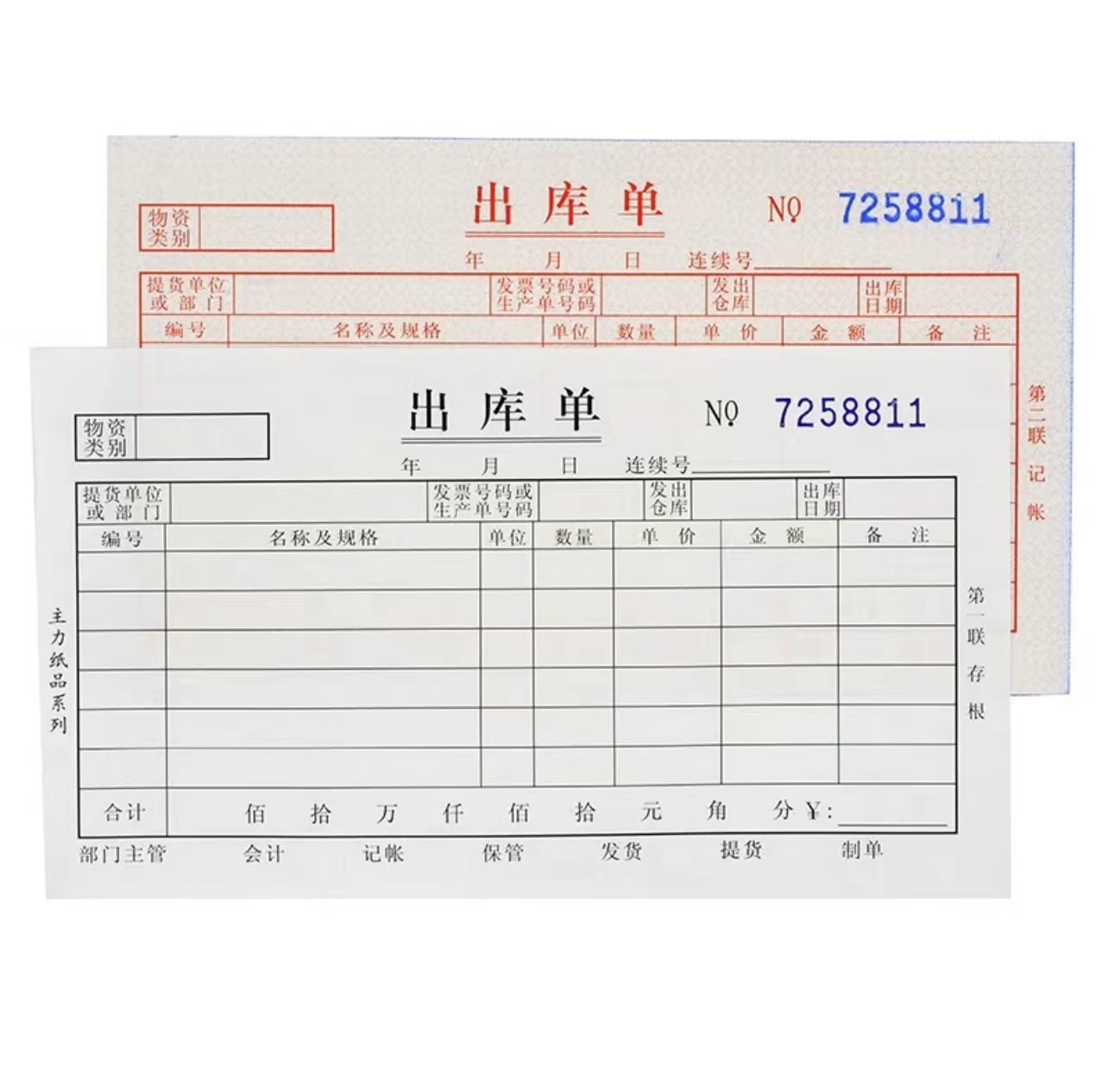主力 二联出库单(单栏)48K 523 30组/本