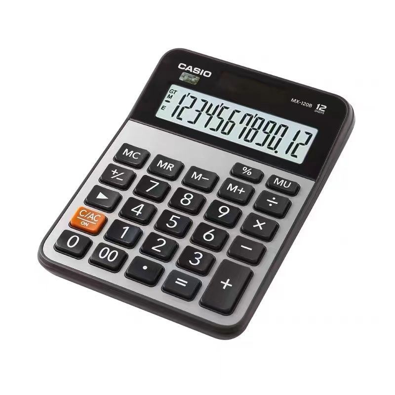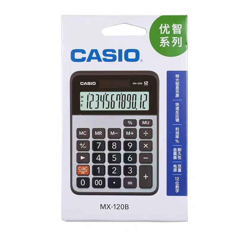 卡西欧 CASIO 12位数字显示金属面板办公计算器 MX-120B 小号