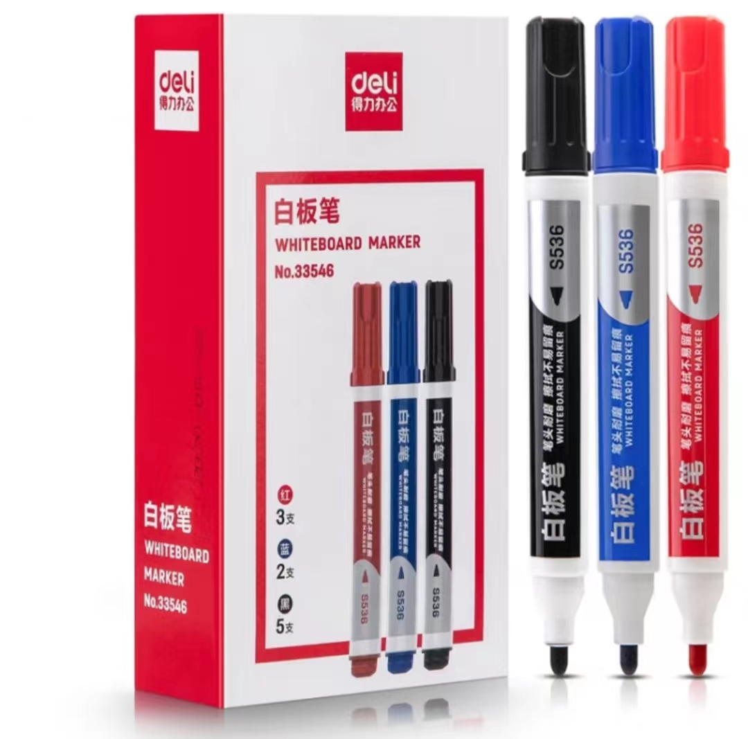 得力 deli 易擦白板笔 S536 (黑色、红色、蓝色) 10支/盒