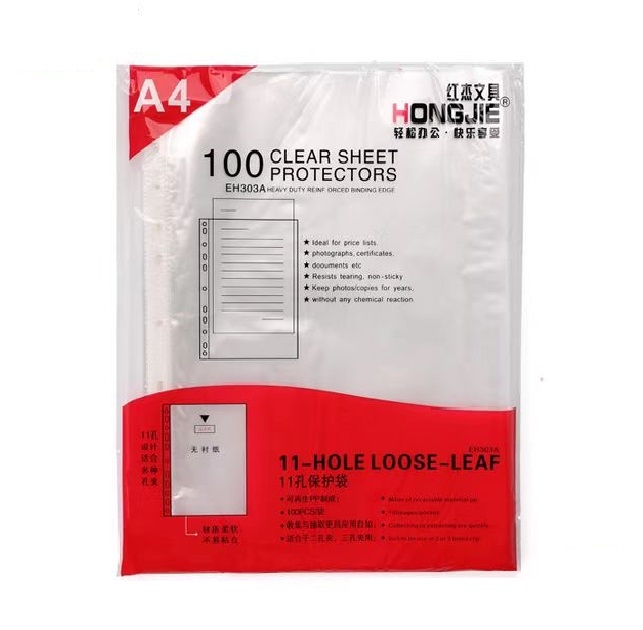 红杰 HONGJIE 11孔文件保护套 十一孔文件袋 A4 4C(透明色)100个/包
