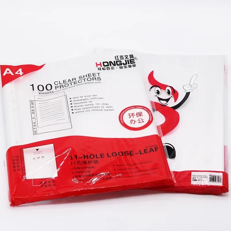 红杰 HONGJIE 11孔文件保护套 十一孔文件袋 A4 8C(透明色)50个/包