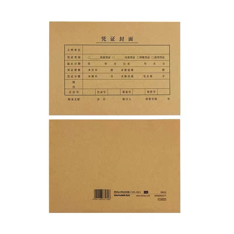 西玛 SIMAA A5凭证封面 会计凭证封面 212*150mm 25套/包 FM131