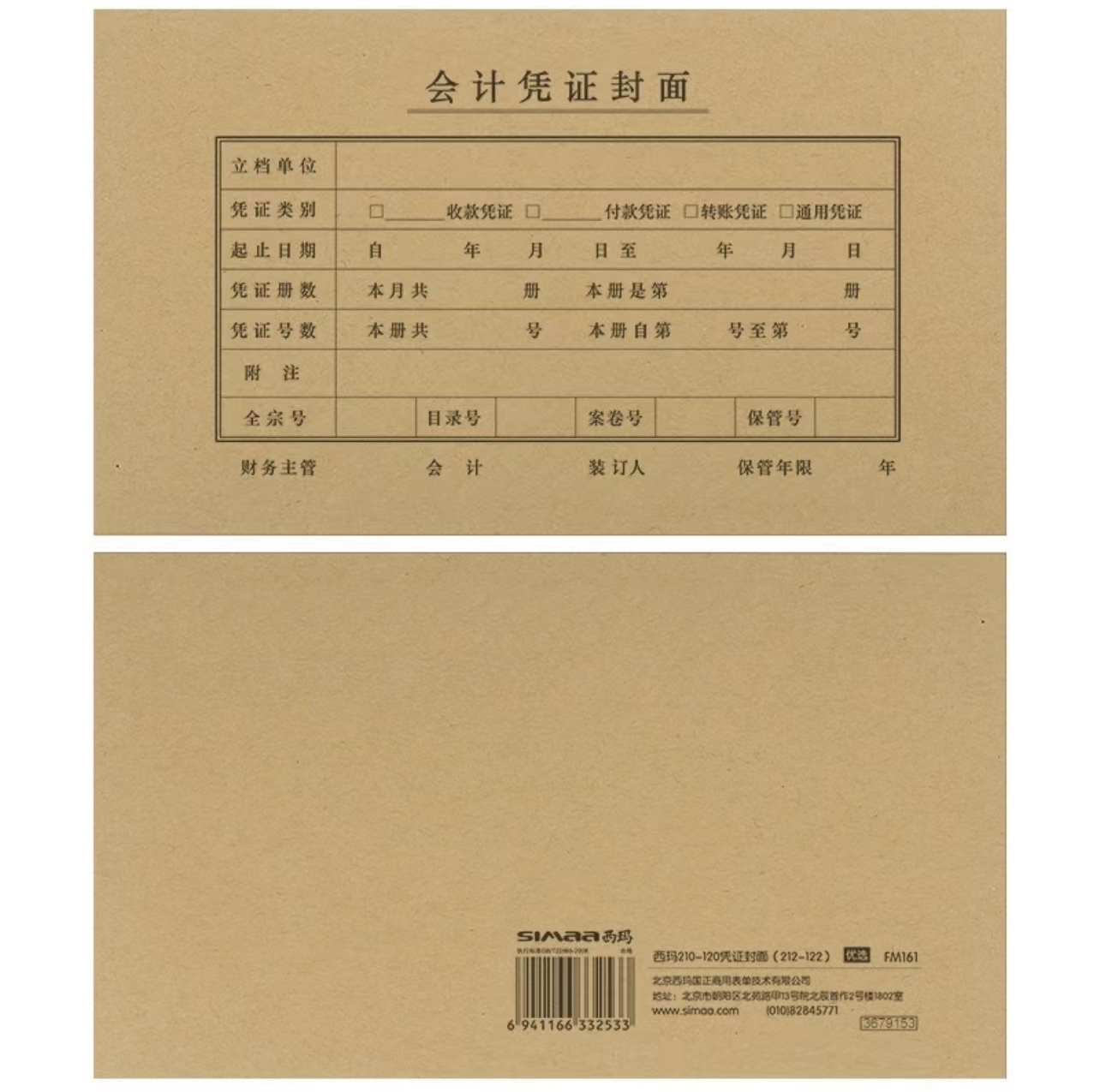 西玛 SIMAA 会计凭证封面 记账凭证封面 212*122mm 25套/包 FM161