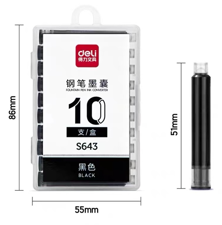 得力 钢笔墨囊 10支/盒 S643