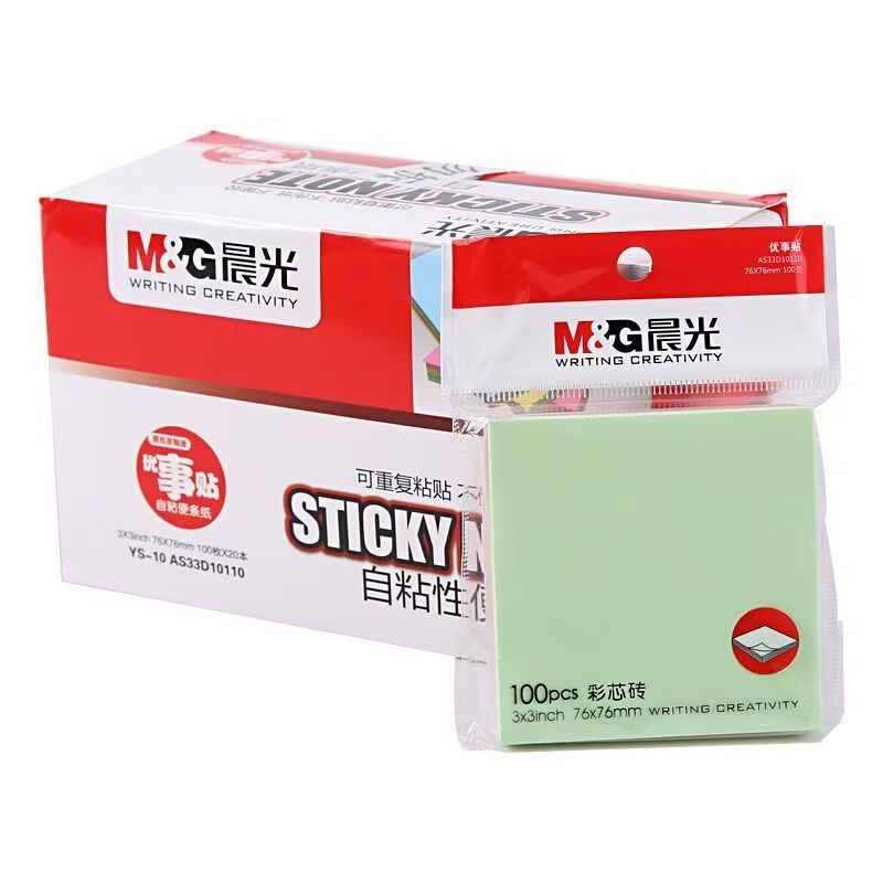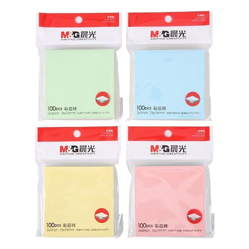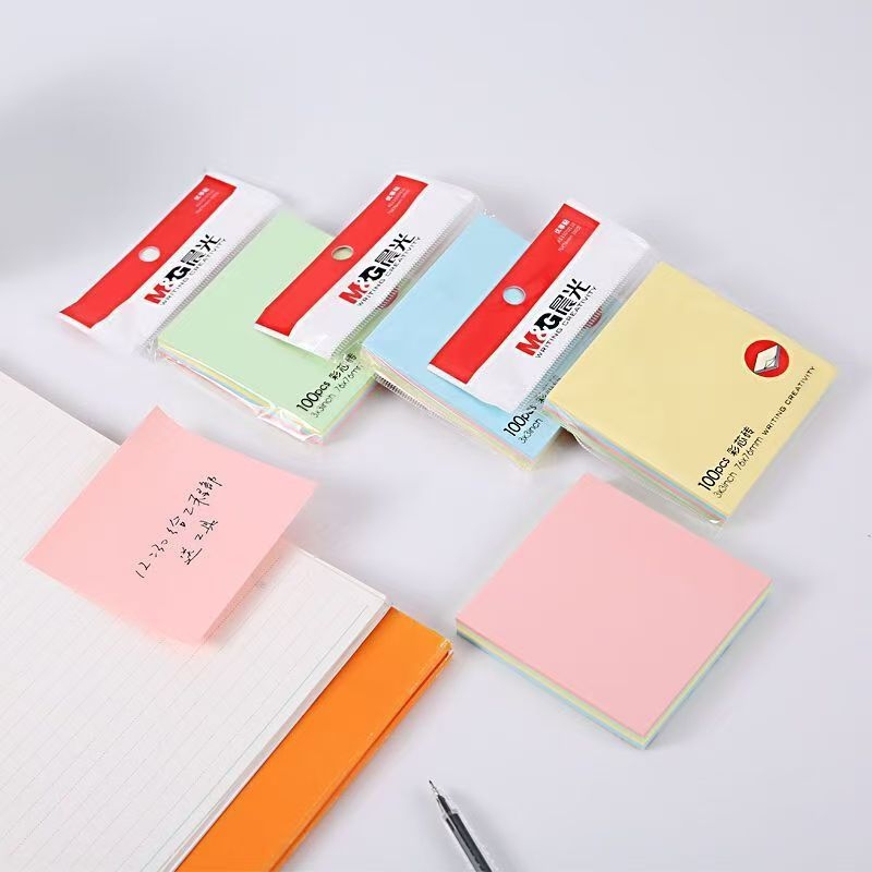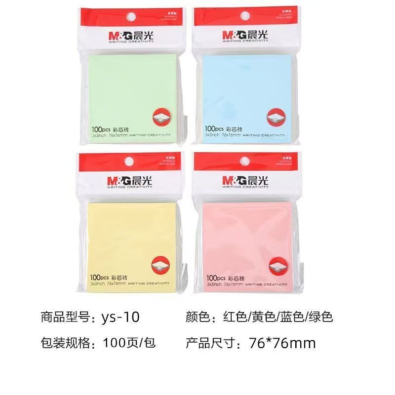 晨光四色报事贴便利贴多彩自粘便条纸便签纸易事贴 YS-10 76*76mm (黄色、绿色、蓝色、粉红) 100页/本