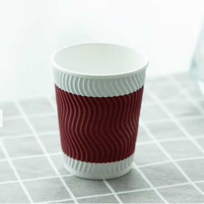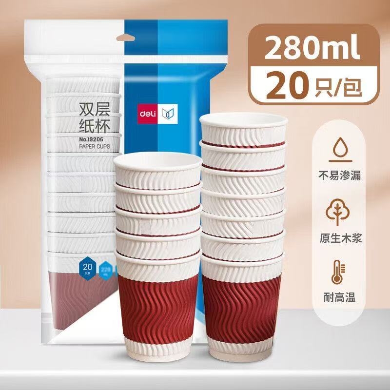 得力 deli 280ml 一次性纸杯 杯子 水杯 防滑三层加厚波纹 红色 20只装 19206