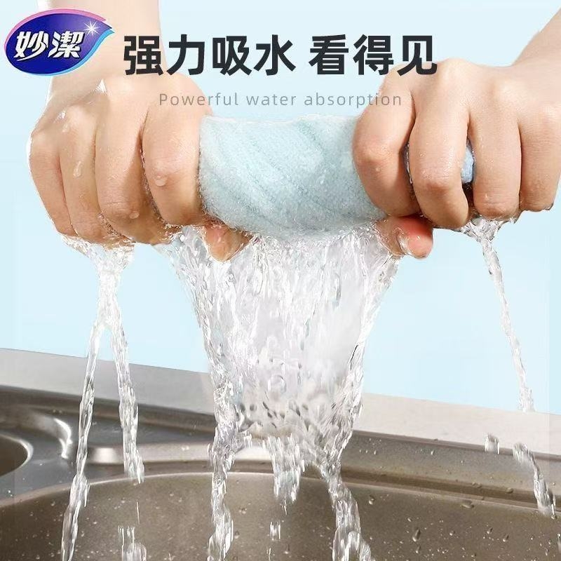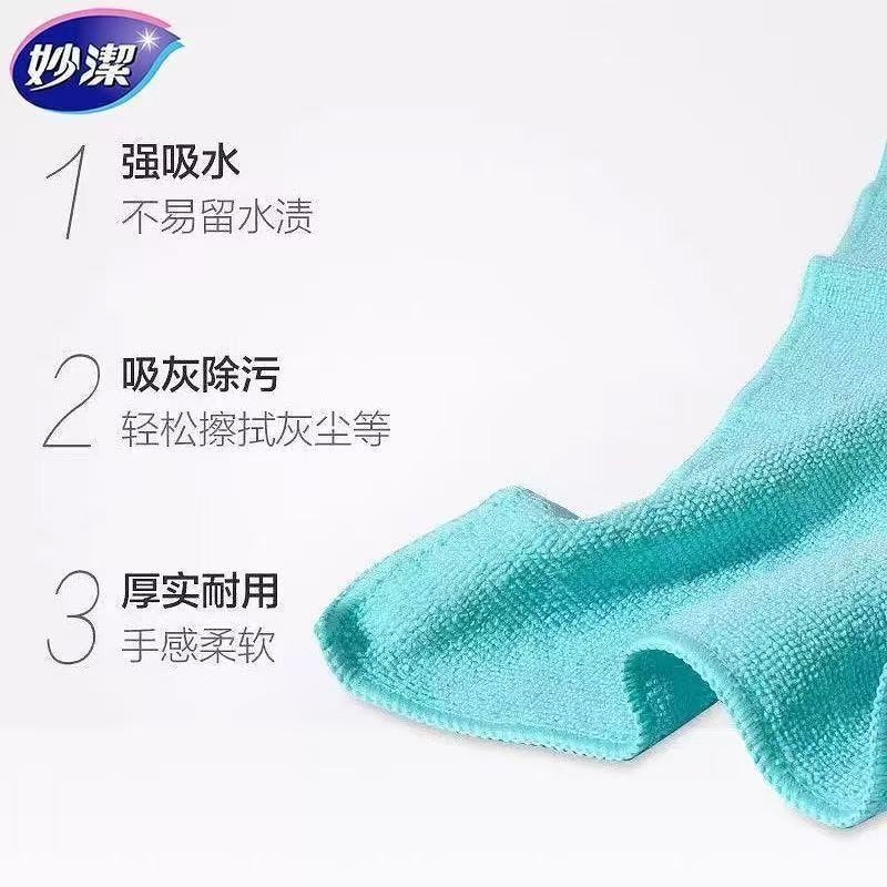 妙洁 超纤抹布30*30cm 多功能擦拭布纤维家务抹布 磨毛快速擦干厨房家用神器吸水加厚洗碗家用 4片装