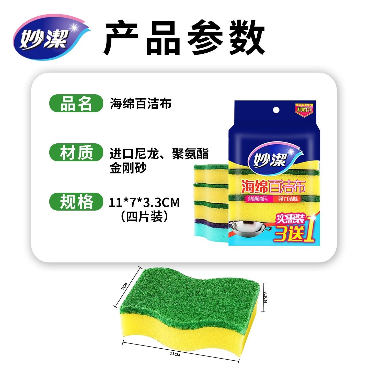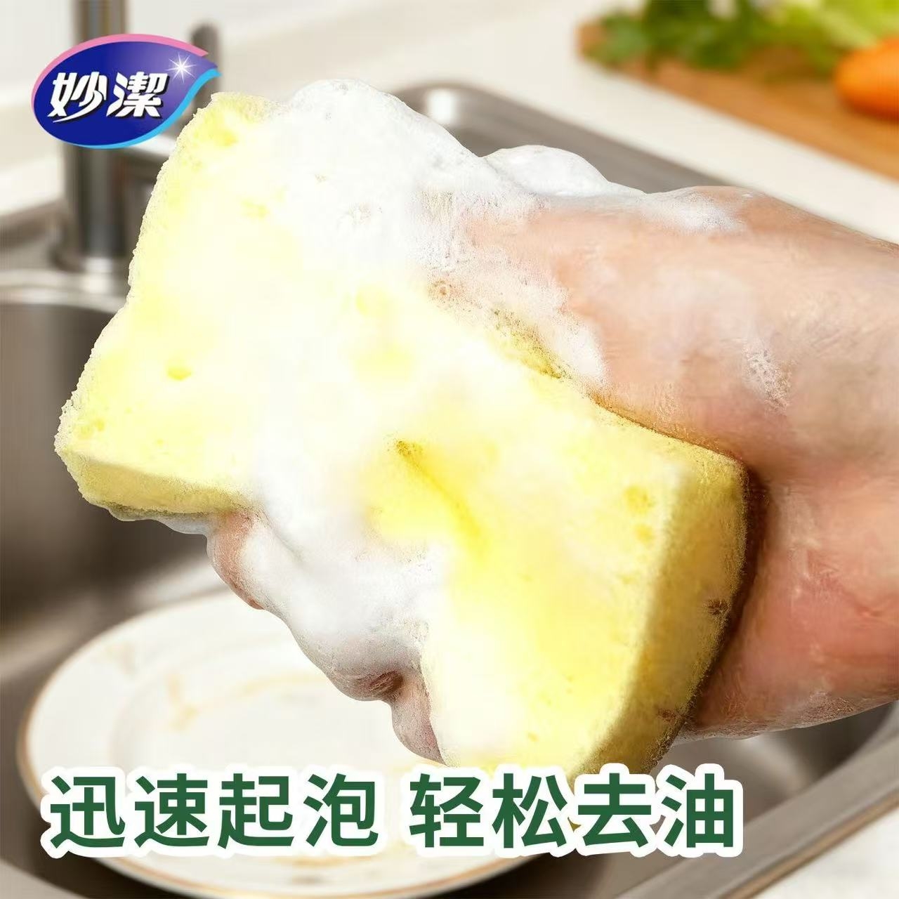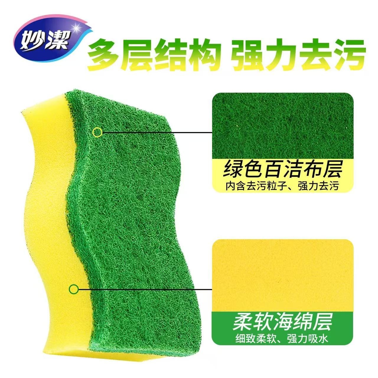 妙洁 百洁布家用洗碗布 海绵百洁布 加厚洗碗刷锅神器吸水去油家用厨房餐具清洁布 海绵百洁布 4片装