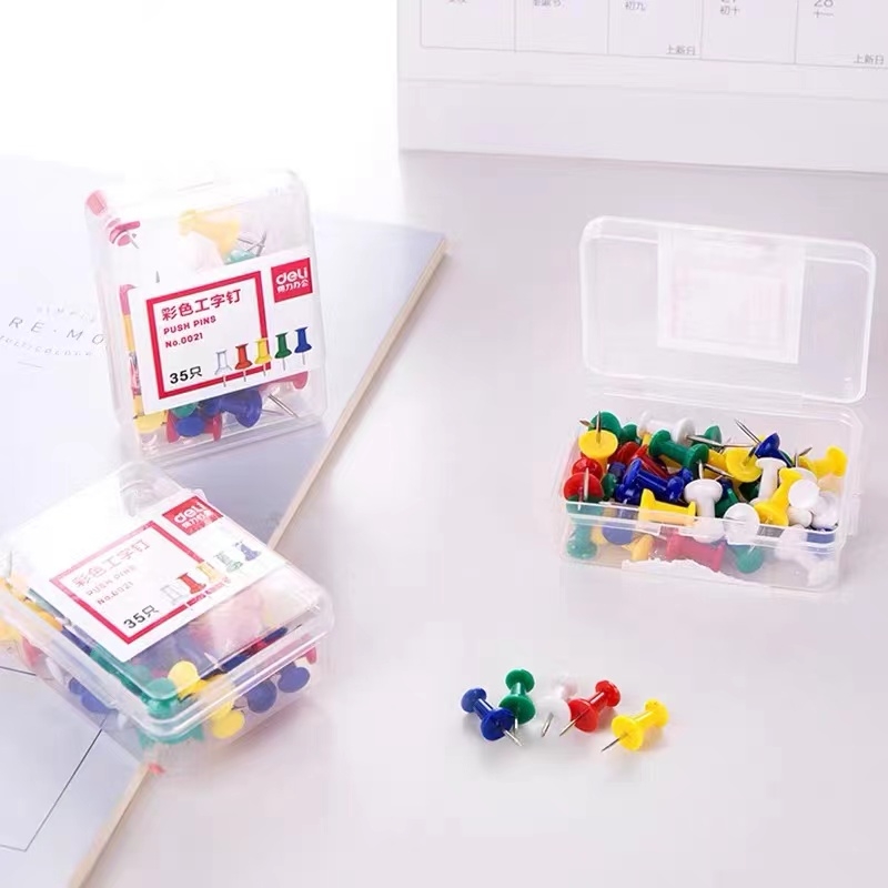 得力 deli 工字钉 0021 彩色工字钉35枚/盒