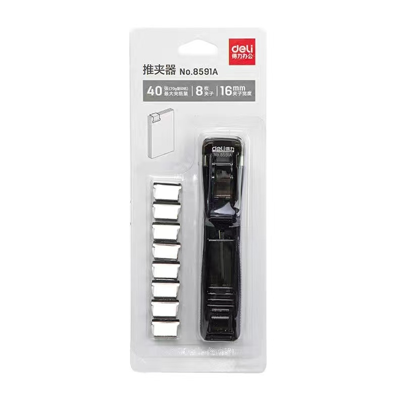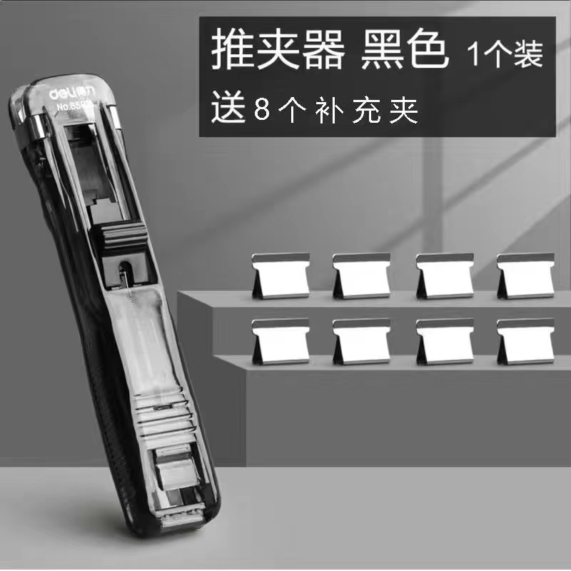 得力 deli 推夹器 8591A 1个推夹器 8个替换钉(透明黑)