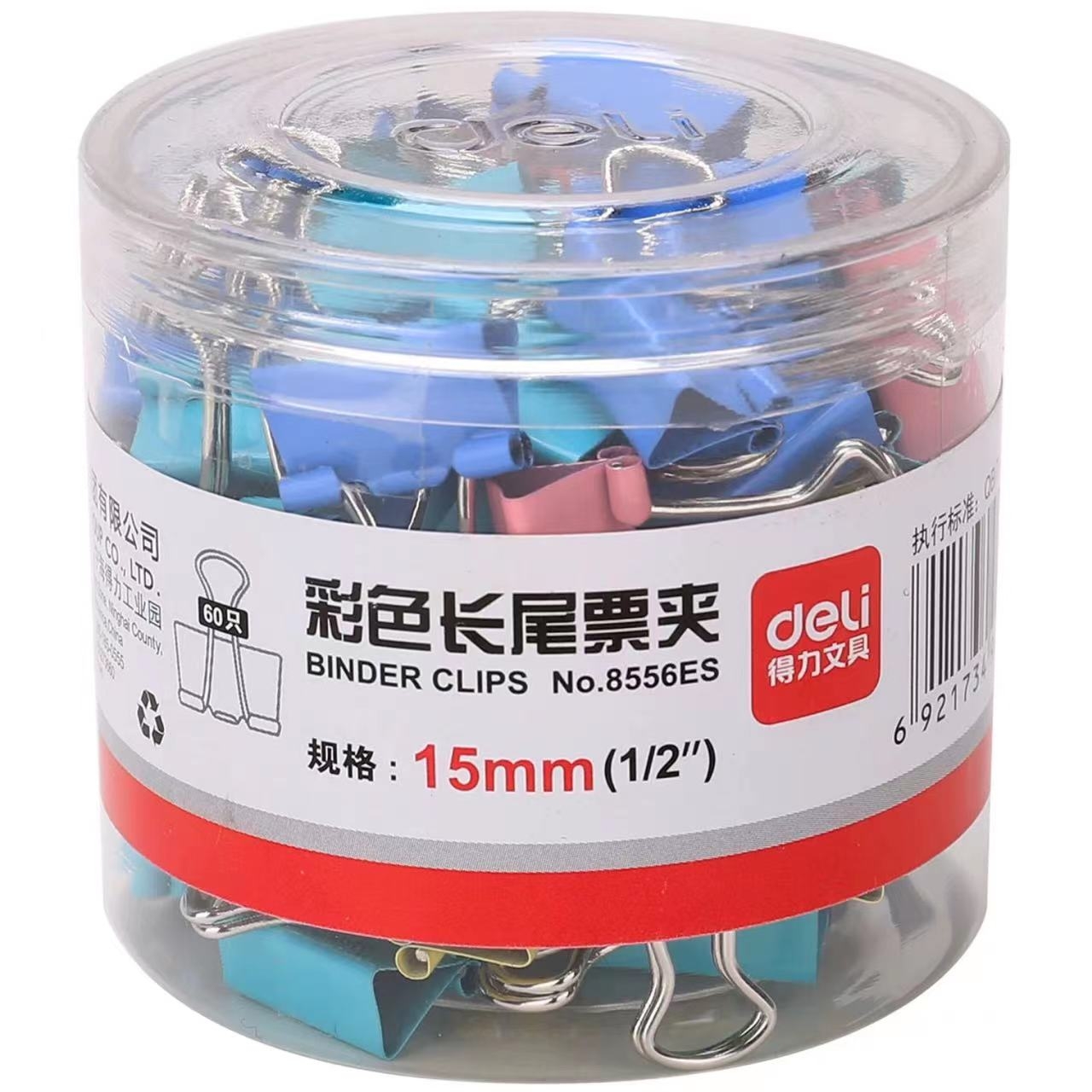 得力 deli 彩色筒装长尾夹 燕尾夹 8556 15mm 60个/筒