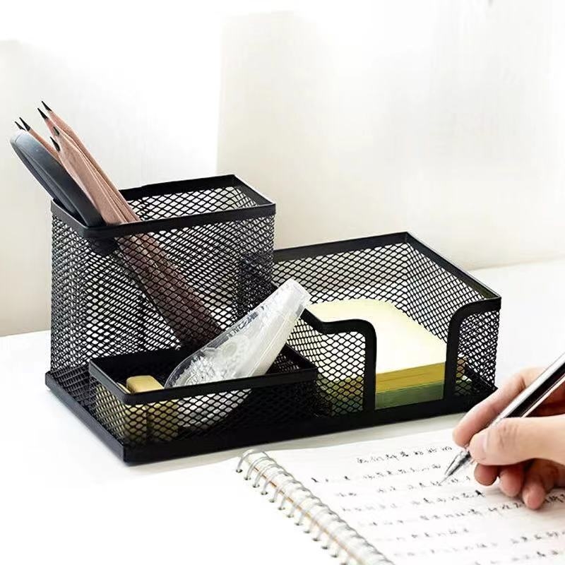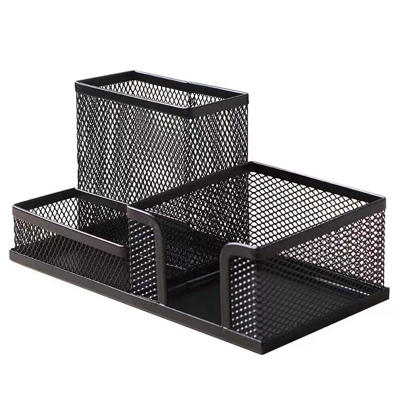 云峰 金属网状三格组合多功能桌面收纳笔筒 9034