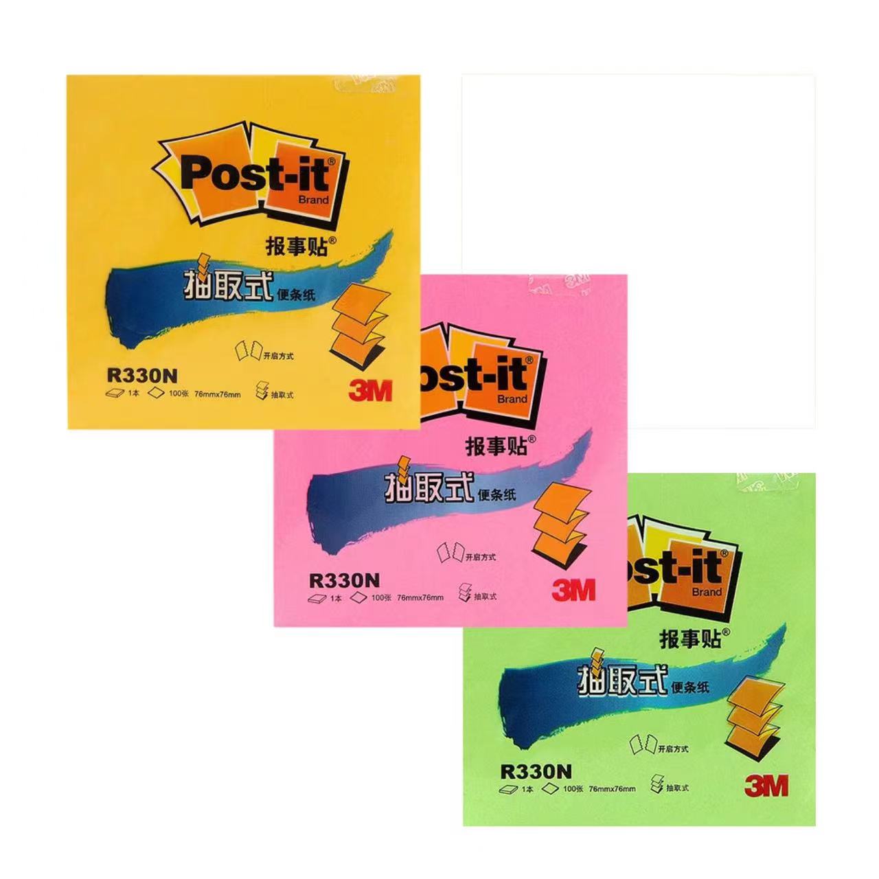 3M 抽取式报事贴/便利贴/百事贴 R330 76*76mm (颜色随机) 12本/包