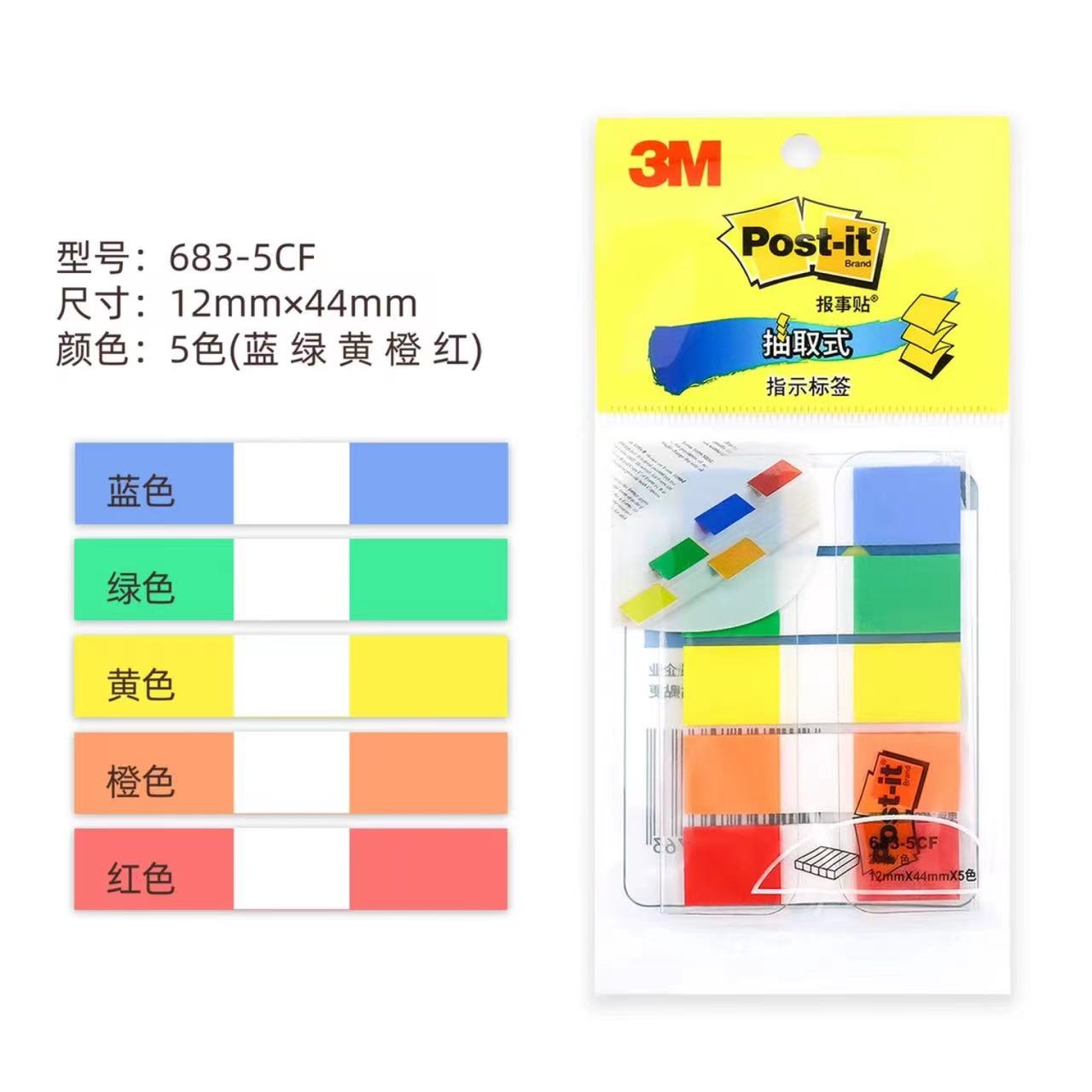 3M 透明塑料 指示标签 683-5CF 12*44mm*5 (荧光5色) 20页/条 5条/包