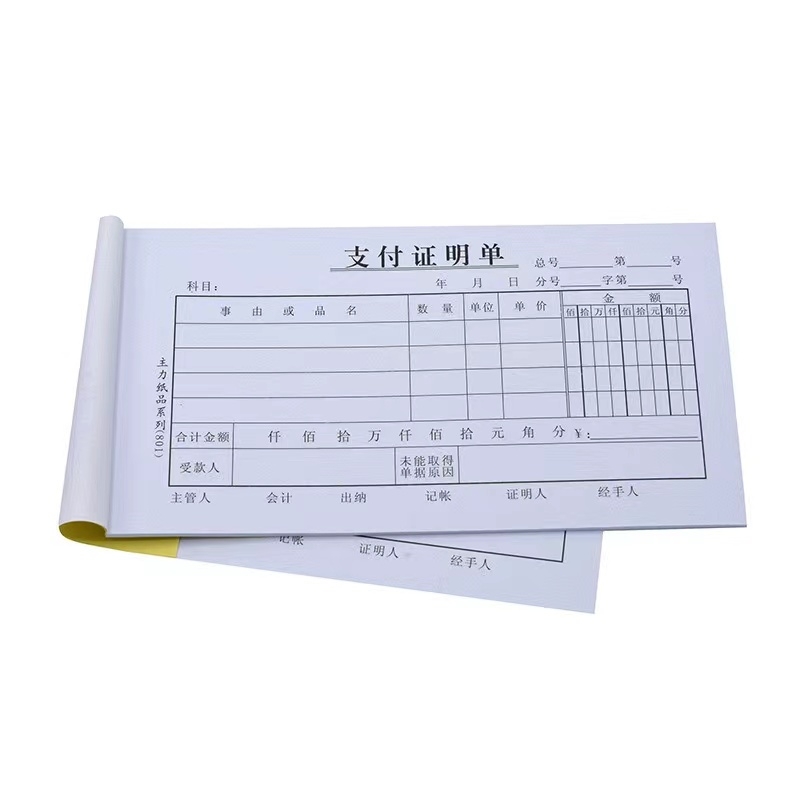 主力 支付证明单 48K 175*95mm 24页/本 20本/包