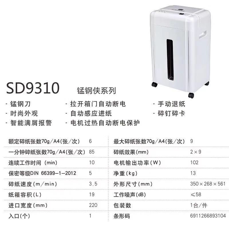 三木 SUNWOOD 4级保密碎纸机 19L SD9310