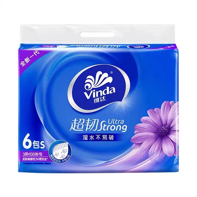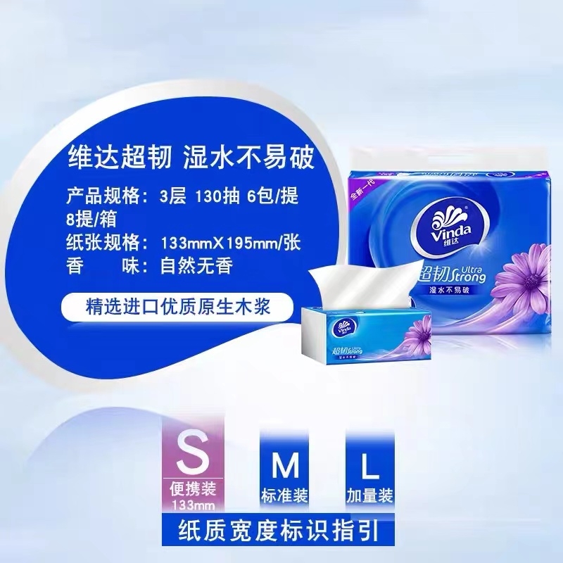 维达 vinda 维达抽纸超韧软包抽取式面巾纸 软抽纸 S码 V2239 三层 130抽/包 6包/提 8提/箱