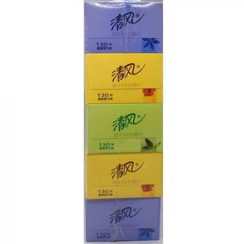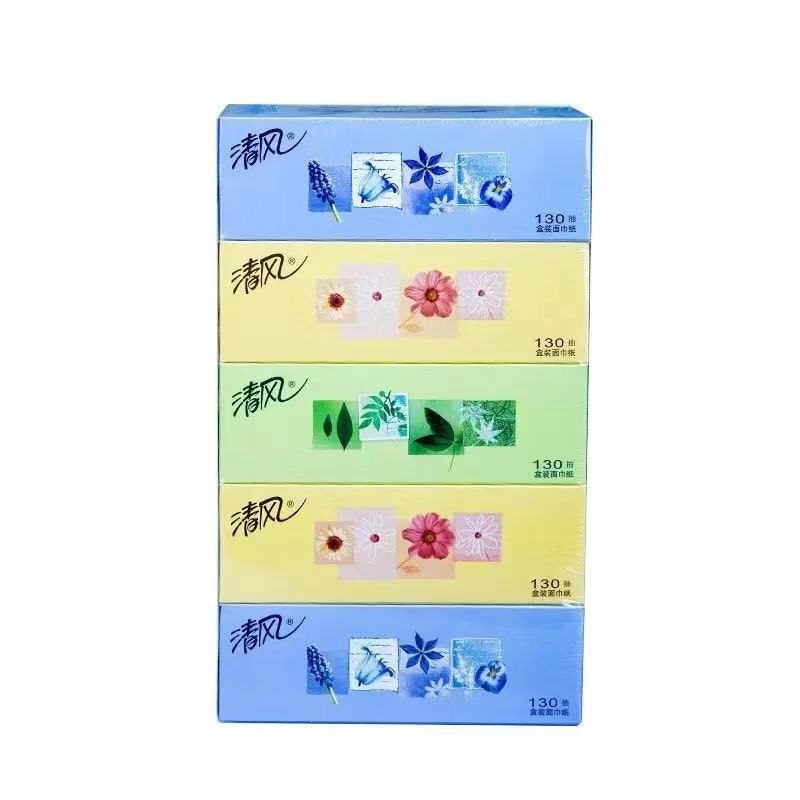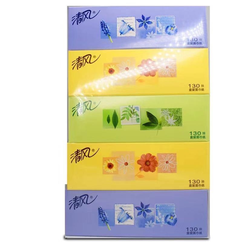 清风 Breeze 盒装面巾纸 盒装抽纸 B355 双层 130抽/盒 5盒/提 10提/箱