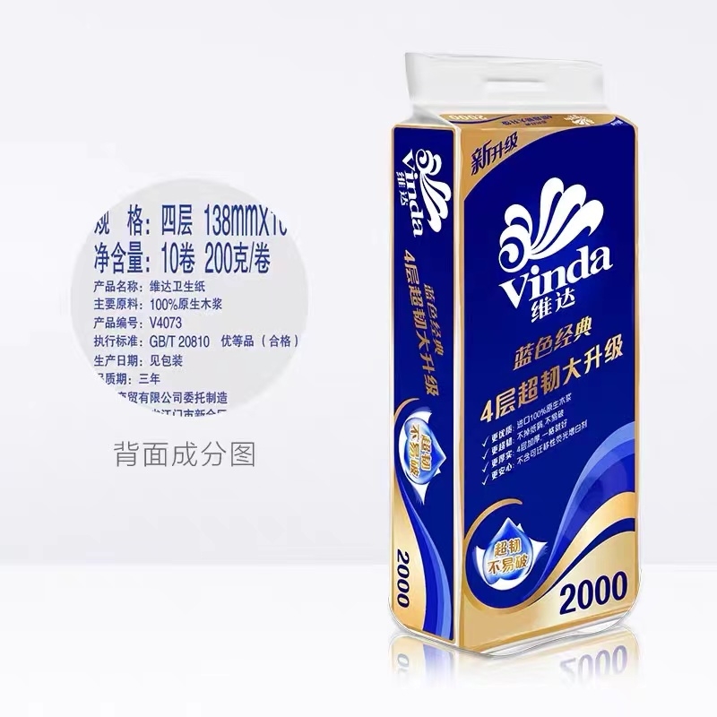 维达 Vinda 蓝色经典卷筒卫生纸 卷纸 四层 200克/卷 V4028 10卷/提